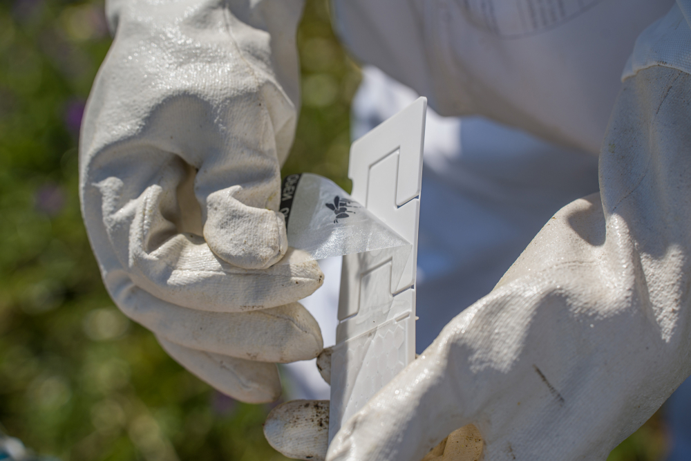 Einfache Handhabung, wirkungsvoll und effektiv: Das ist der Calistrip® BIOX Oxalsäurestreifen. Als erster und bisher einziger in der EU zugelassener Oxalsäurestreifen mit 6,44 g Oxalsäuredihydrat zur Bekämpfung der Varroamilbe entfaltet dieser seine Wirkung kontinuierlich über 6 Wochen - und das temperaturunabhängig bei direktem Kontakt mit den Bienen. Die Anwendung ist zeitsparend und unkompliziert: Zuerst wird die einseitige Schutzfolie entfernt. Im Anschluss wird die Länge passend zum Beutenmaß ausgewählt, indem die Calistrips® bei Haken A oder B abgeknickt werden. Position A ist dabei passend für Dadant oder Jumbo Rähmchen, Position B passend für Zander oder Langstroth. Nun werden die Streifen im Brutraum in den Wabengassen der äußeren Brutwaben platziert - fertig!