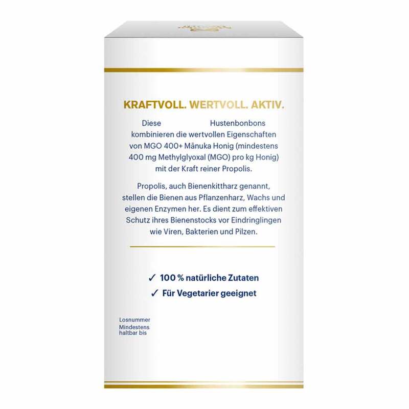 Mānuka Honig Hustenbonbons in der Geschmacksrichtung Propolis mit wertvollem MGO 400+ Mānuka Honig aus Neuseeland, Propolis und Vitamin C.