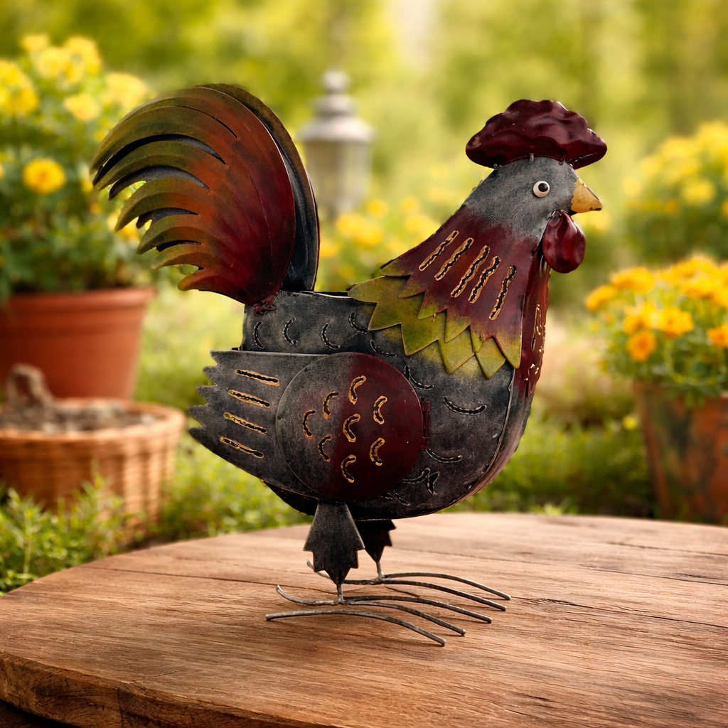 Die dekorative Hahnfigur eignet sich sowohl als saisonale Gartendeko im Frühling und Sommer als auch als ganzjähriger Akzent für Innen- und geschützte Außenbereiche. Auch als Geschenk für Gartenfreunde oder Liebhaber von Bauernhof- und Landhausdeko ist dieser Hahn eine wunderbare Wahl.