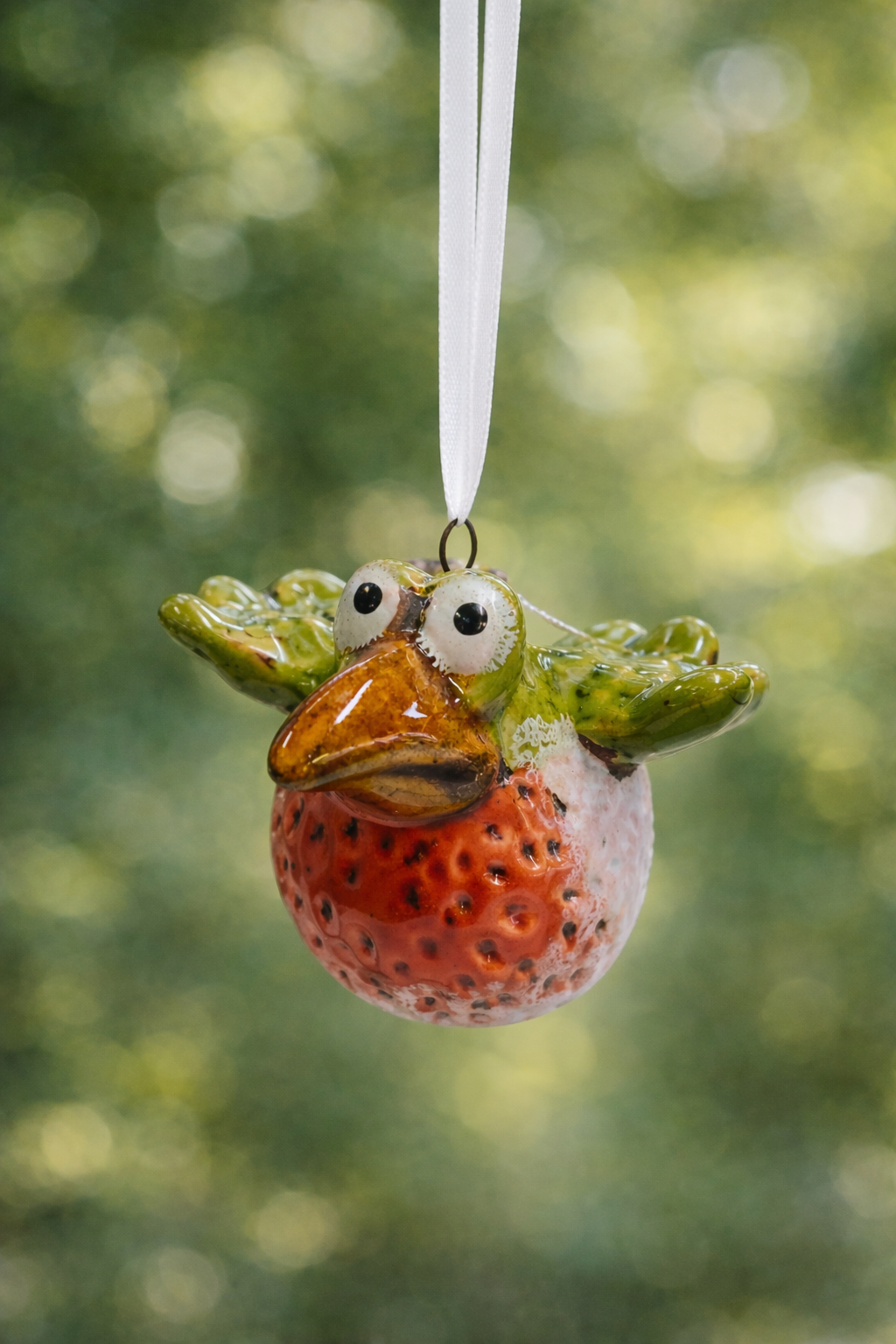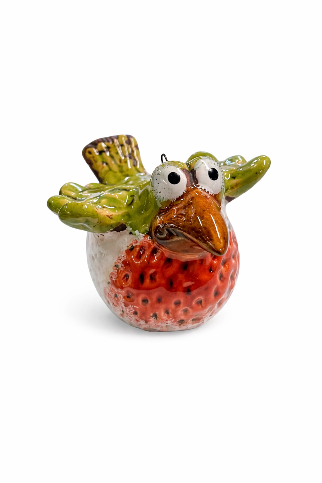 Dieser liebevoll gestaltete Keramik Vogel ist ein echter Blickfang für Haus, Garten oder Balkon. Mit seinem fröhlichen Design, den großen Augen und der detailreichen, glänzenden Glasur bringt er sofort gute Laune in jede Umgebung. Der runde Körper in fruchtigem Rot mit dekorativer Struktur erinnert an eine Erdbeere und verleiht der Figur ihren ganz besonderen Charakter.