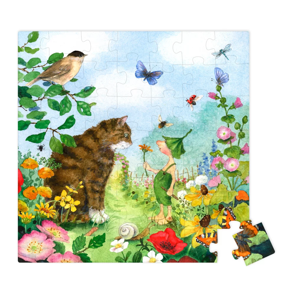 Das Gartenpuzzle "Giesbert" zeigt eine idyllische Gartenszene und sorgt für entspannte Stunden beim Zusammensetzen der Teile.