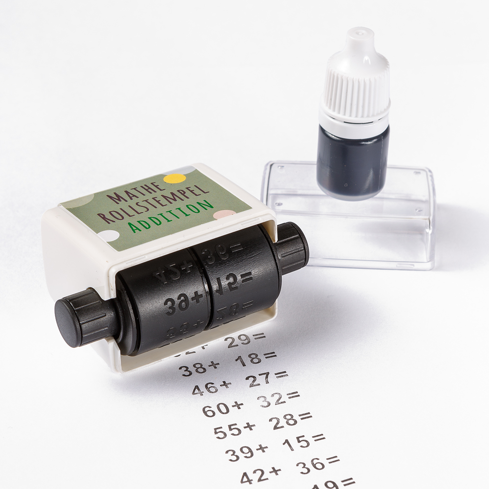Dieses vielseitige und innovative Lehrmittel wurde entwickelt, um Kindern im Zahlenraum bis 100 dabei zu helfen, die Grundlagen der Mathematik spielerisch zu erfassen. Mit seiner einfachen Handhabung und der Möglichkeit, zwischen 10 verschiedenen Warteschlangenmodi zu wählen, bietet dieser Stempel eine Vielzahl von Lernmöglichkeiten. Dank des leicht einzustellenden Designs – durch einfaches Drehen des Rädchens, das sich seitlich am Stempel befindet – wird eine Wiederholung der Aufgaben verhindert. Dadurch wird sichergestellt, dass Dein Kind kontinuierlich neue Herausforderungen meistern und sein Verständnis von Additionsaufgaben verbessern kann. Der Mathe Rollstempel, in den Maßen 5 x 6 x 3 cm (L x B x T), wird in einer praktischen Aufbewahrungsbox inkl. Nachfülltinte geliefert. Mit einer ergonomischen Gestaltung liegt der Stempel bequem in der Hand und bietet ein reibungsloses Rollen für eine mühelose Anwendung. Der Mathe Rollstempel ist für alle zukünftigen Rechenmeister ein ideales Geschenk. Natürlich passt er auch wunderbar in jede Schultüte. Lass die Zahlen rollen und sieh zu, wie sich Dein Kind in die Welt der Zahlen verliebt!