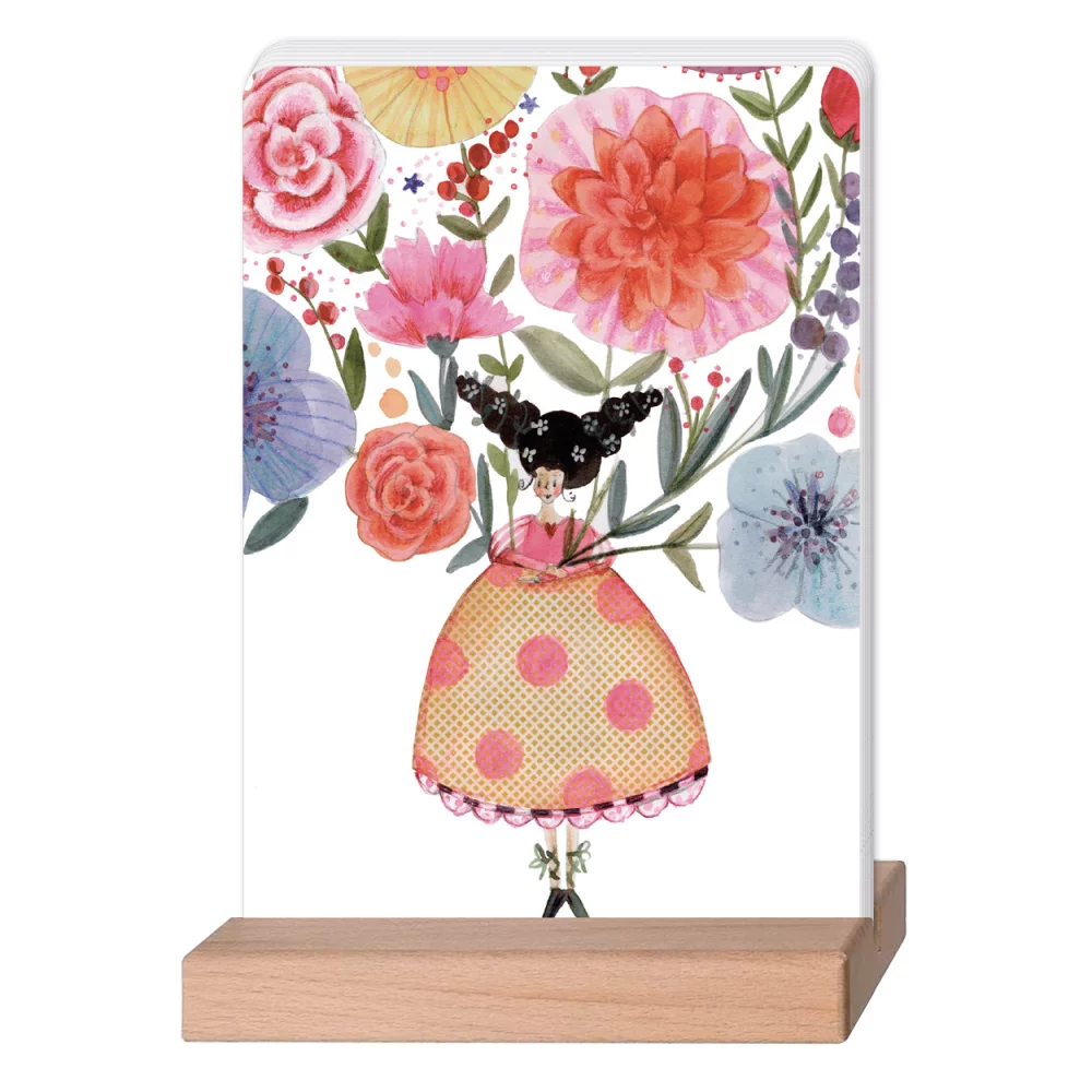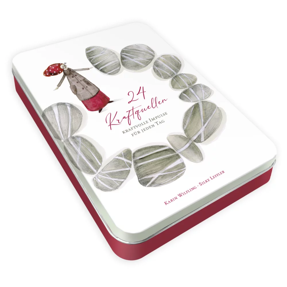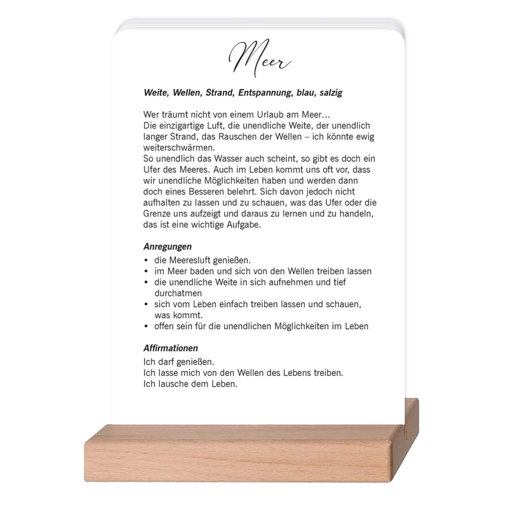 Dose mit 24 Postkarten mit Kartenhalter aus Holz