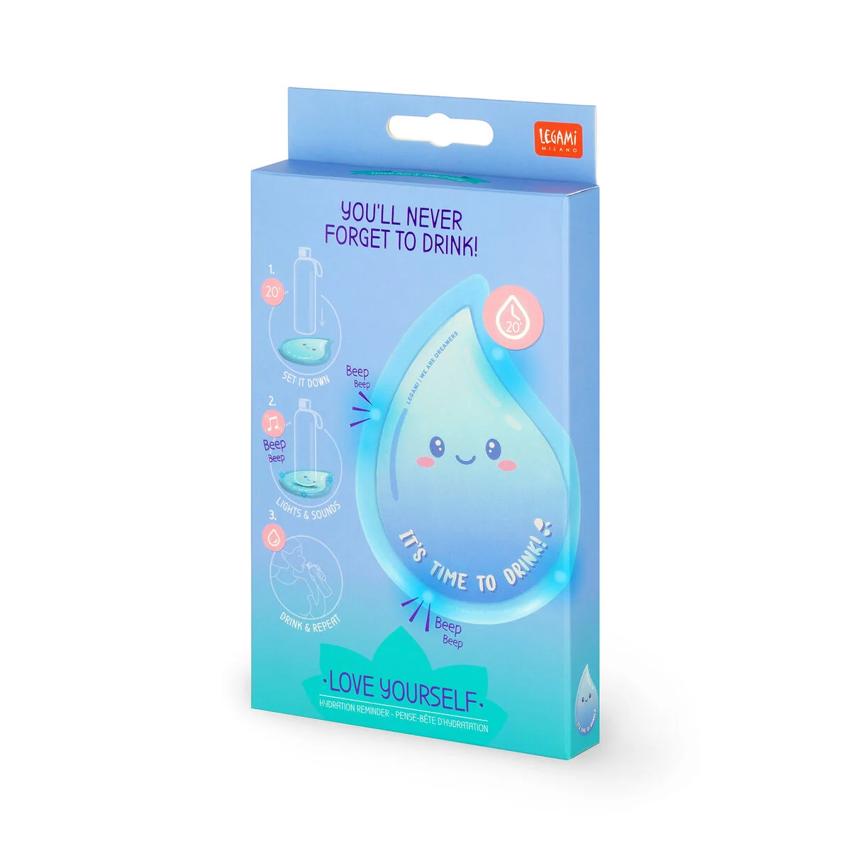 Kümmer dich mit jedem Tropfen um dich selbst: ganz einfach mit der Trinkerinnerung - Love Yourself von Legami. Dieser supersüsse Tropfen für Flaschen erinnert dich mit Ton und Licht alle 20 Minuten daran, etwas Wasser zu trinken. Die smarte Art, sich um seine Flüssigkeitszufuhr zu kümmern.