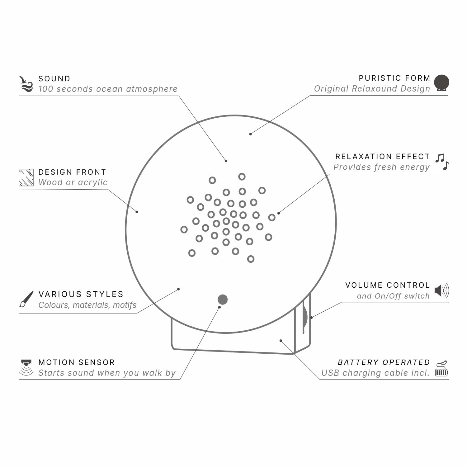 Die Klangkulisse der Oceanbox aktivierst Du im Vorbeigehen per Bewegungsmelder. Die Lautstärke lässt sich stufenlos einstellen. Dank der kompakten Größe und dem praktischen Akkubetrieb kannst Du die erfrischende Energie des Ozeans überall nutzen. Im Bad oder Wohnzimmer, auf dem Schreibtisch oder Balkon: Dein Strand ist ab jetzt immer nur ein paar Schritte entfernt.