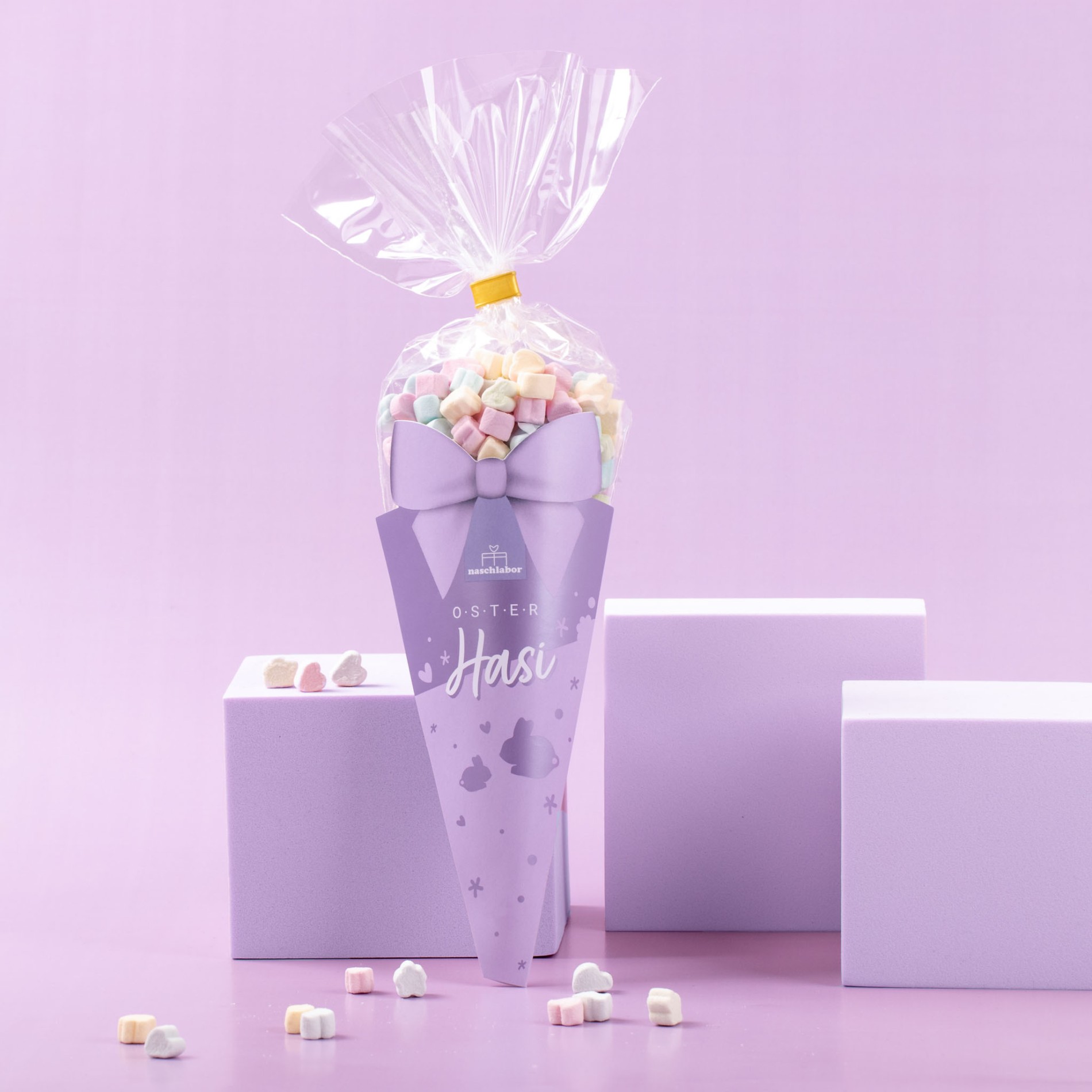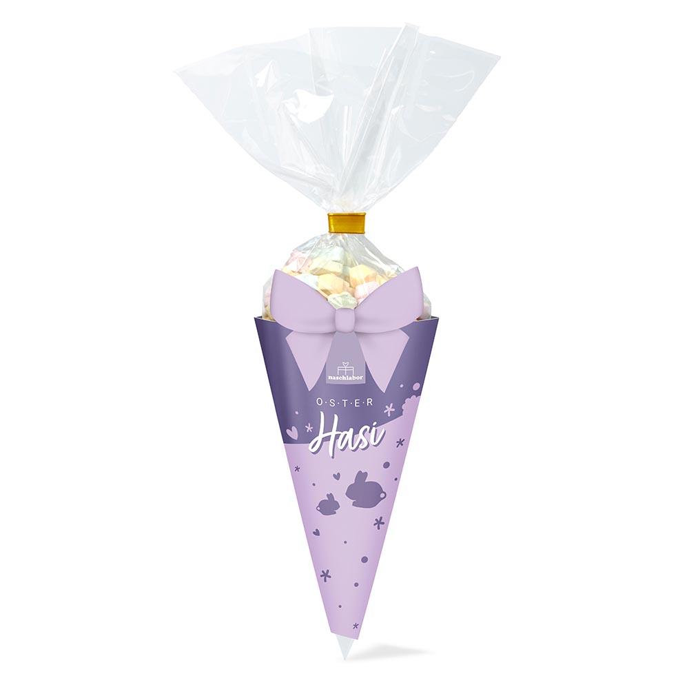 Die Candy Tüte „Oster Hasi“ enthält 55 Gramm süße mini Marshmallows in Herzen und Blumen Form und in bunten Pastellfarbtönen. Die Candy Tüte ist das ideale Geschenk passend zum Osterfest. Ob zum Befüllen des Osternests oder zum Verstecken im eignen Garten, die Candy Tüte ist die perfekte Aufmerksamkeit für Groß und Klein.