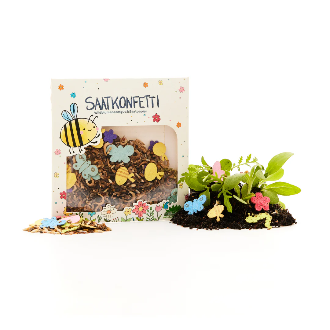 Buntes Naturerlebnis: Entdeckt gemeinsam die Natur, verstreut das bunte Saatkonfetti und schaut den Blumen beim Wachsen zu.