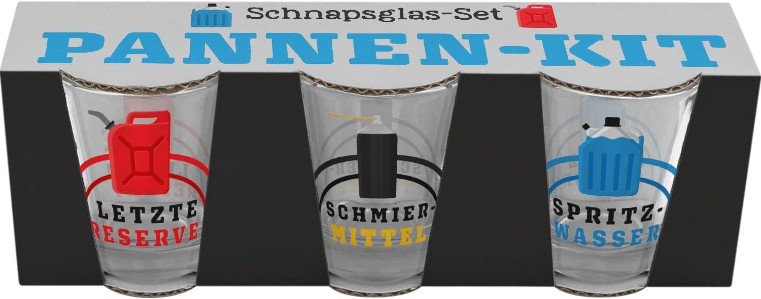 Das Set besteht aus drei Schnapsgläsern mit verschiedenen Designs.