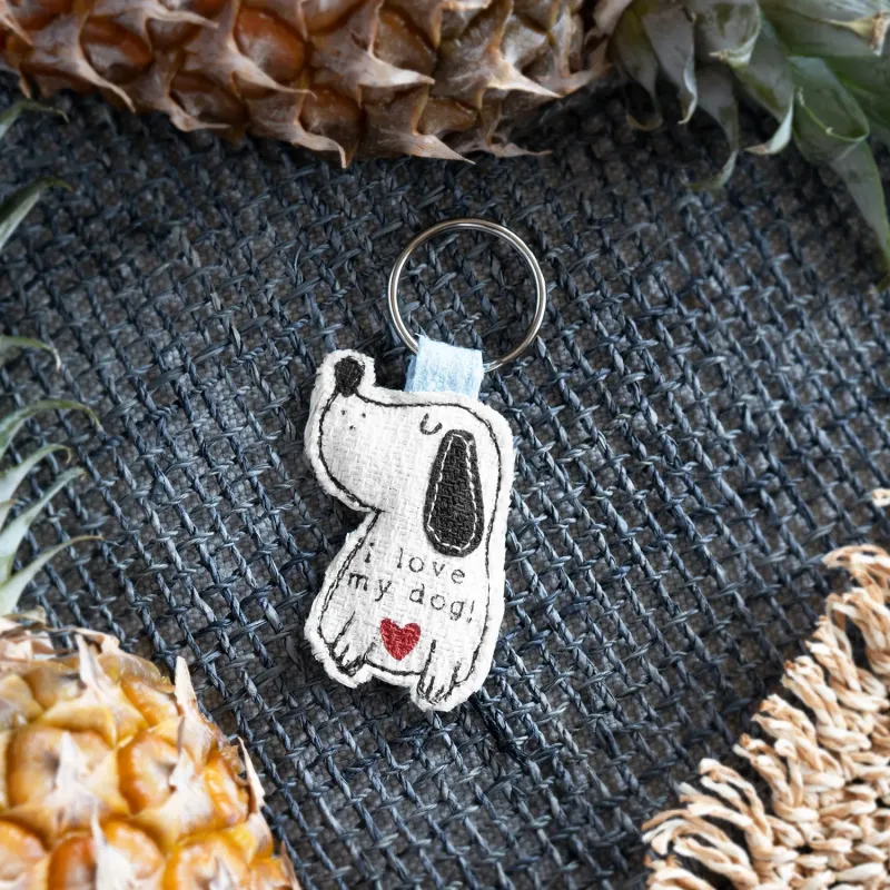 Produktinformationen "Schlüsselanhänger aus Ananas-Fasern »I love my Dog«"