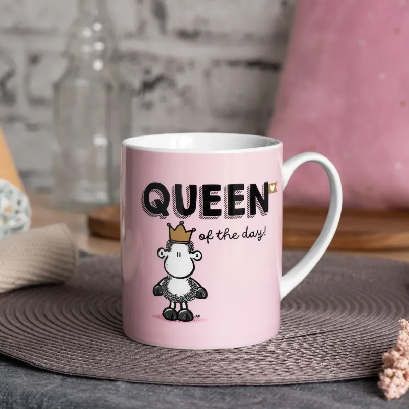 Stylisch, groß und selbstbewusst: Diese XL-Tasse „Queen of the day!“ ist genau das Richtige für alle, die wissen, was sie wollen. Ihr modernes Design in Rosa und der coole Spruch machen sie zum Hingucker auf jedem Tisch. Perfekt für große Portionen Kaffee oder Tee – und für Deinen starken Auftritt als Queen des Tages!
