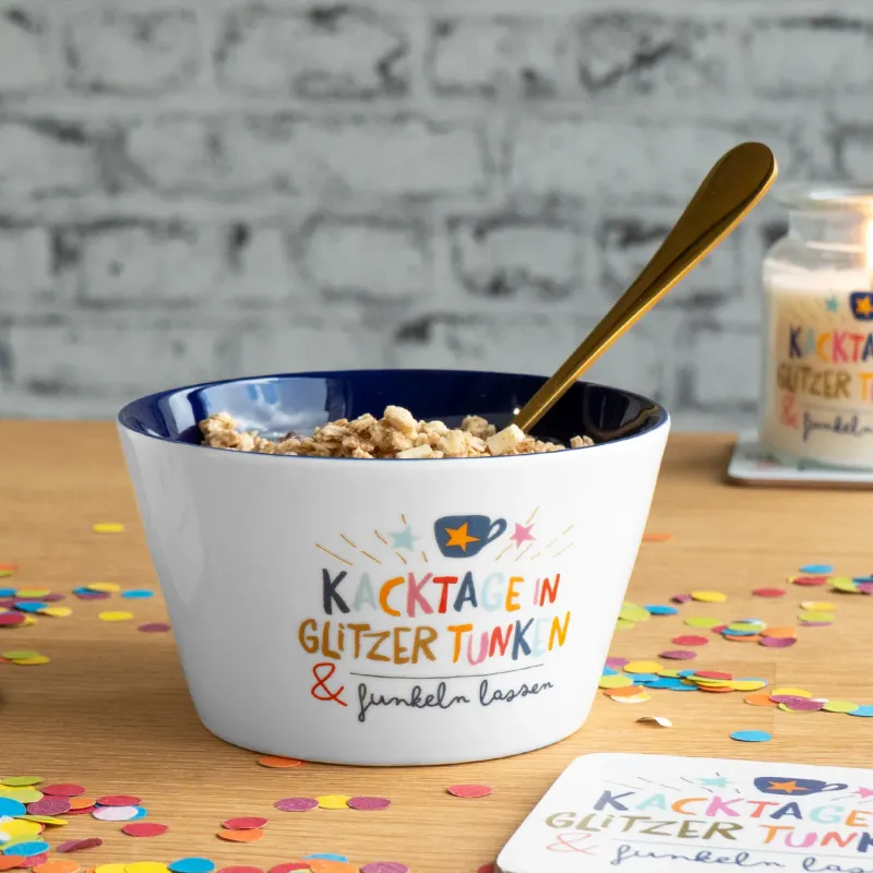 Auch im Alltag kann Magie stecken. Lass es funkeln, mit dieser witzigen Müslischale! Egal ob Du sie für Dein morgentliches Müsli oder zu Mittag für eine Suppe nehmen möchtest, sie verleiht Deinem Tag ,egal wie dunkel er ist, der gewisse Dosis an Schimmer und Glitzer.