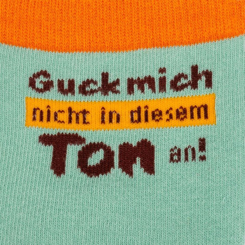 Ein Blick sagt mehr als tausend Worte – aber diese Socken sagen’s trotzdem. „Guck mich nicht in diesem Ton an!“ bringt frechen Humor und niedliches Design gekonnt zusammen.