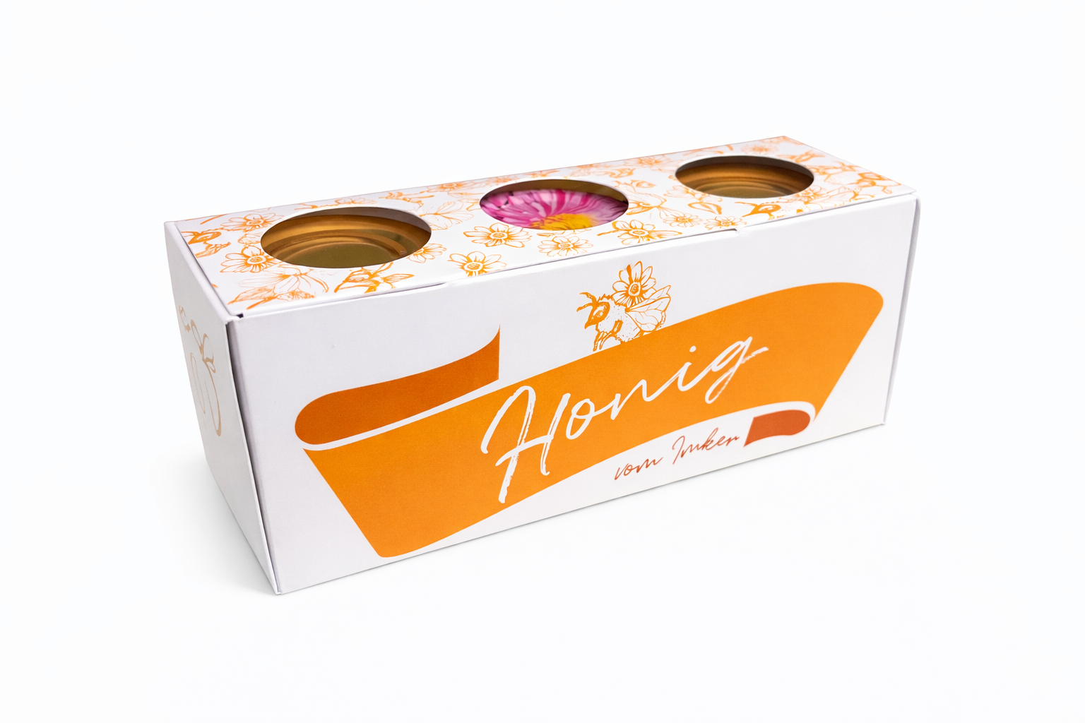 Geschenkverpackung für 3 Honiggläser à 50 g – Ideal als Probier- & Präsentset