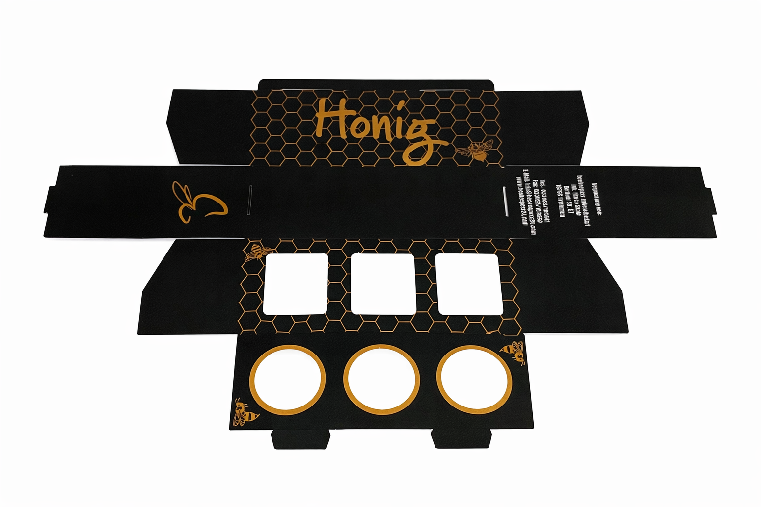 Diese hochwertige Geschenkverpackung für drei Honiggläschen à 50 g ist die perfekte Wahl für alle, die besondere Genussmomente stilvoll verschenken möchten. Ob als liebevolles Mitbringsel, kleines Dankeschön oder exklusives Probier-Set mit verschiedenen Honigsorten – diese Verpackung setzt feine Honigspezialitäten ansprechend in Szene.