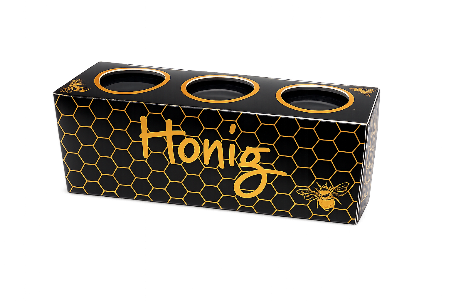 Geschenkverpackung für 3 Honiggläser à 50 g – Ideal als Probier- & Präsentset