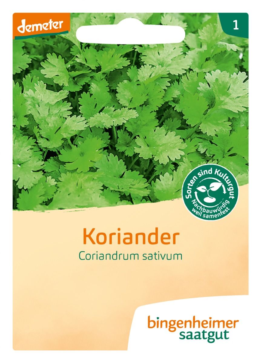 Der einjährige Koriander 'Konrad' eignet sich als frisches Grün in Suppen, zu Fleischgerichten oder die Samen gemahlen, auch zu Gemüse wie Rote Bete. Höhe 40-60 cm, bevorzugt leichte, durchlässige Böden. Ab März/April Direktsaat. Selektion für Blattkoriander; relativ spät schießend. Besonders gutes Aroma. Auch als Saatscheibe erhältlich.