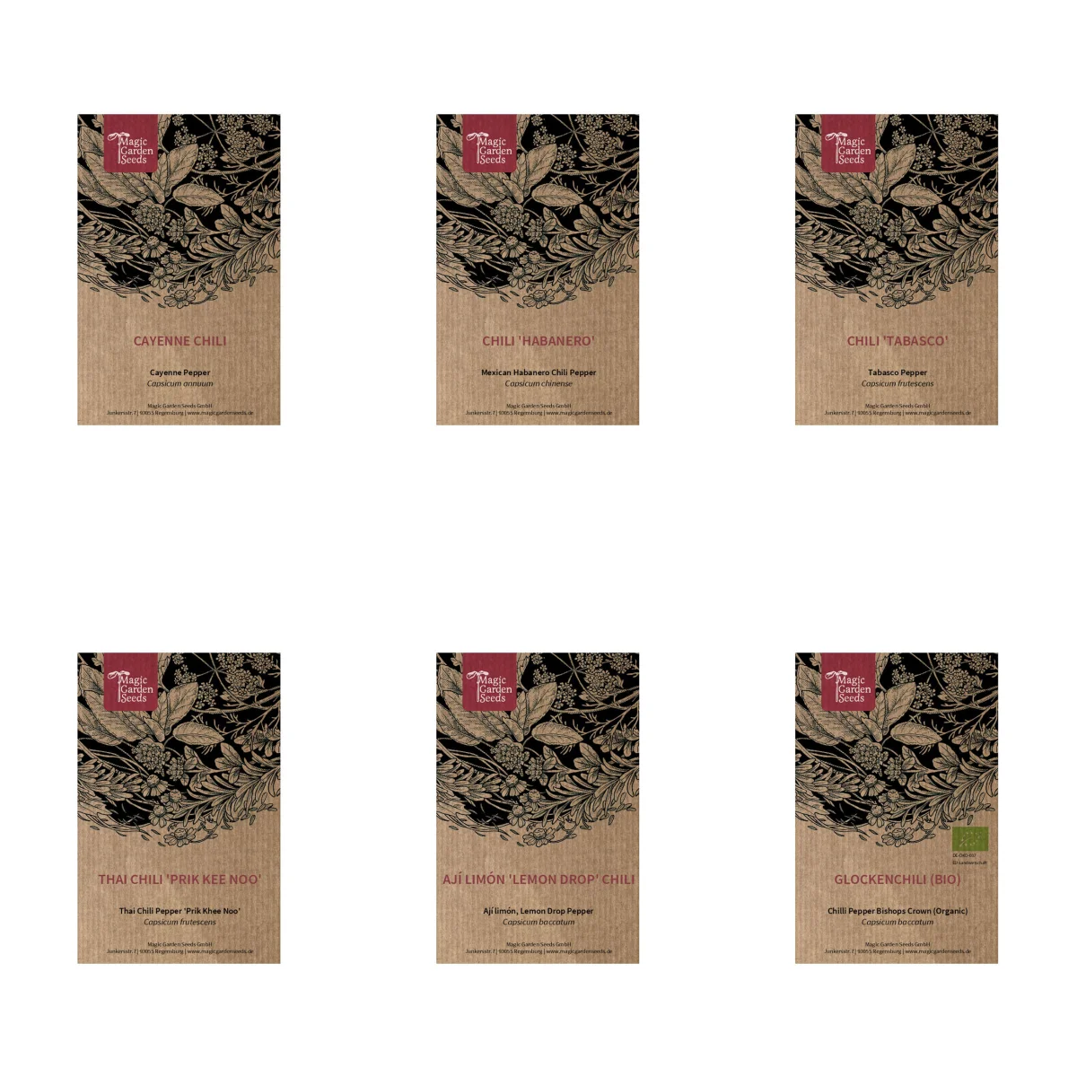 Jeweils ein Samentütchen pro Chilisorte mit mindestens 10 Chili Samen.