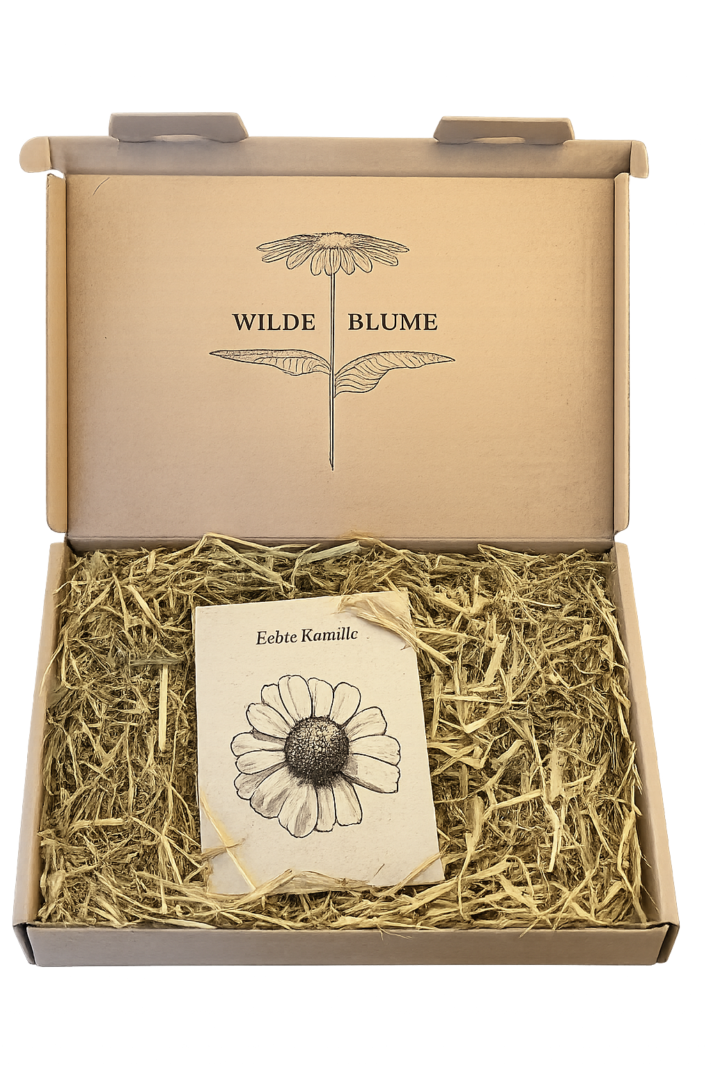 Das Set ist liebevoll gebunden, jede Samentüte mit einer handgezeichneten Blüte dekoriert und in duftendem Heu eingebettet.